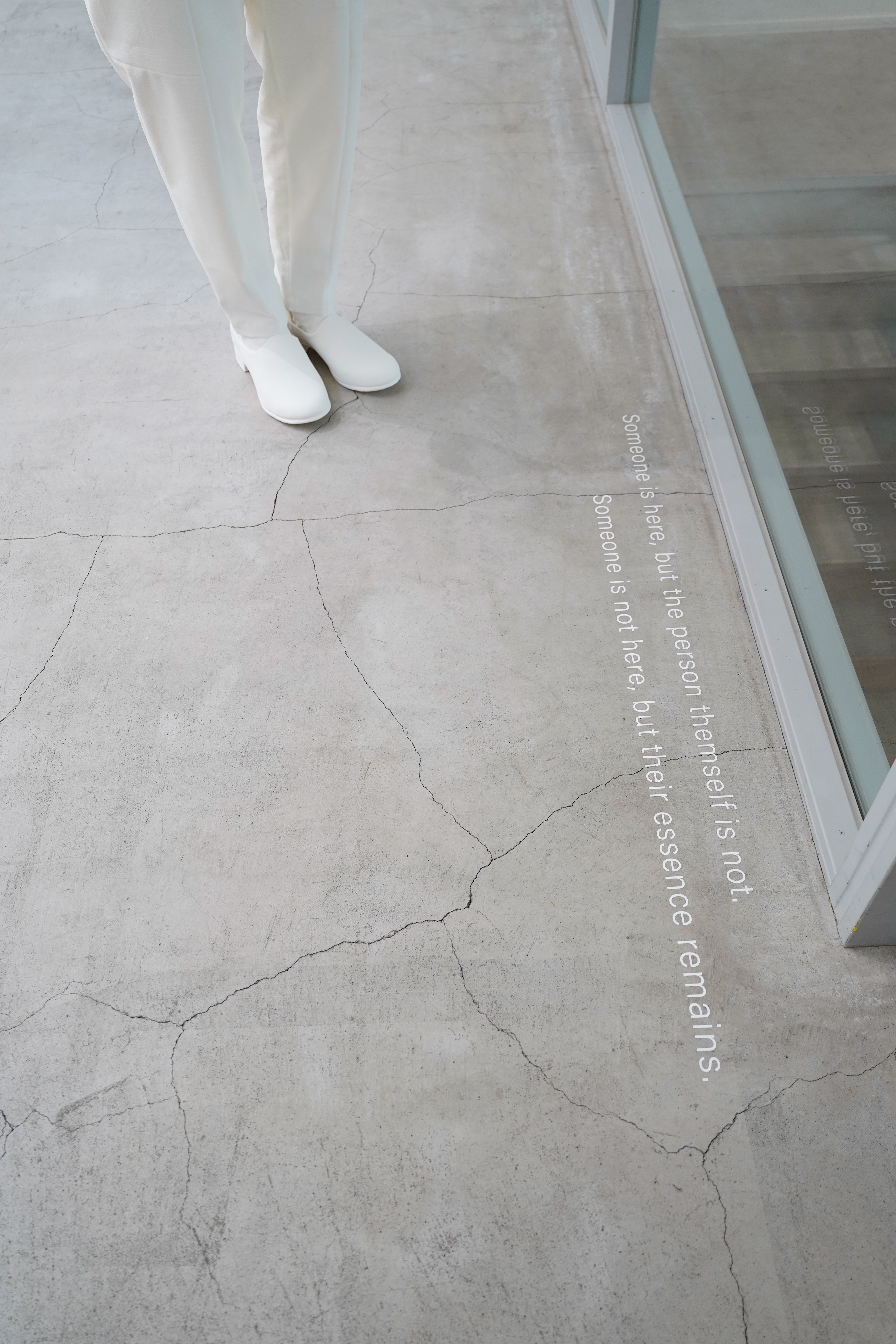 私は長く、「ある人の空気感」とは何かを捉えようとしてきた。 それは、目に見える姿や言葉ではとらえきれない何かなのだろう。 その人の内に潜む記憶や経験、身体に刻まれた無意識的な反応が、空気や光、温度、距離、場所 の気配と静かに響き合いながら、私やその周囲に微かな影響を及ぼす------そんな、確かさと曖昧 さのあわいにあるもの。 この空気感は日々変化し、掴もうとするほどに輪郭や存在を失っていく。 それでも私は、「ある人」がいないとき、ふとした瞬間に「あの人らしさ」が立ち上がるのを感じる。 また、誰かが触れた物や残した痕跡にも、その気配が宿ることがある。 たとえそれが「ある人」と関わりのないものであったとしても、それは記憶の投影かもしれない し、あるいは、もうひとつの時間が立ち上がる瞬間なのかもしれない。 本展では、私の日常で出会ってきた「石」「服と靴」「家とまち」「ある人」を起点に、物質と空 間に向き合ってきた経験を通して、それらに潜む実在と不在のゆらぎに耳を澄ます。 それぞれのものに重なる記憶の層や、かすかに立ち現れる気配が、現実の輪郭を揺らがせ、私た ちの知覚をわずかにずらしていく。 確かなものと不確かなものが重なり合う、誰彼( たそがれ) のふち。 私はその境界に立ちつづけ、日常の奥にひそむ並行世界の気配に触れる。 その揺らぎのなかでこそ、世界と向き合い、自らの存在を確かめ直すことができるのかもしれな い。 「空気感」とは、捉えきれなさをそのまま受け入れる態度なのかもしれない。